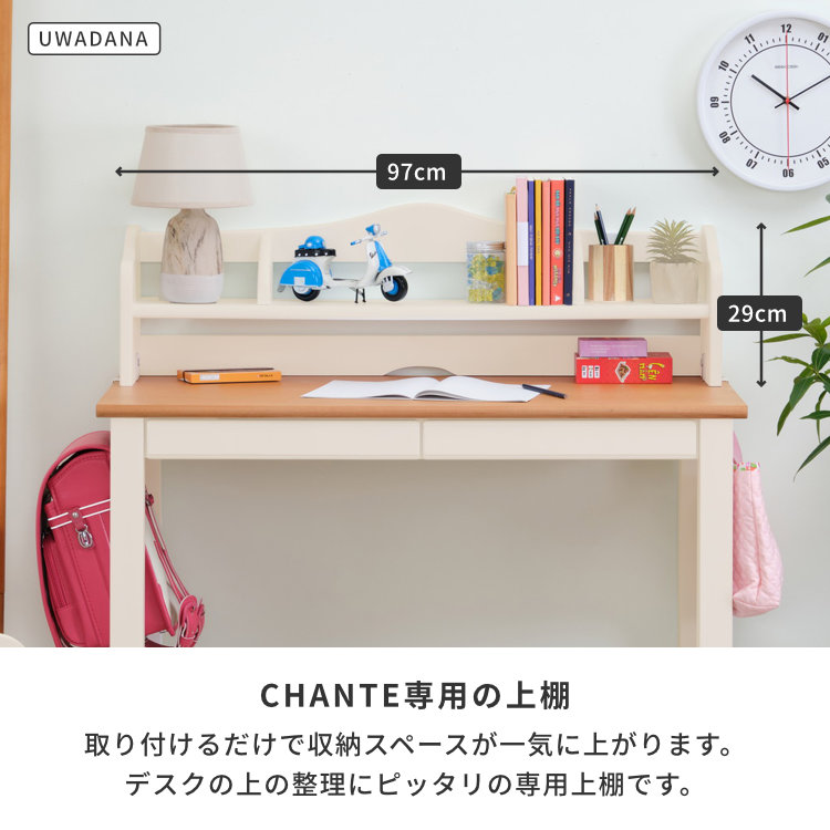 ライトブラウンとホワイトのカラーがナチュラルな雰囲気が魅力のCHANTEの学習デスクセット。シリーズで揃えることで統一感のあるみため、収納力のある学習デスク周りになります。