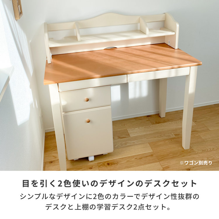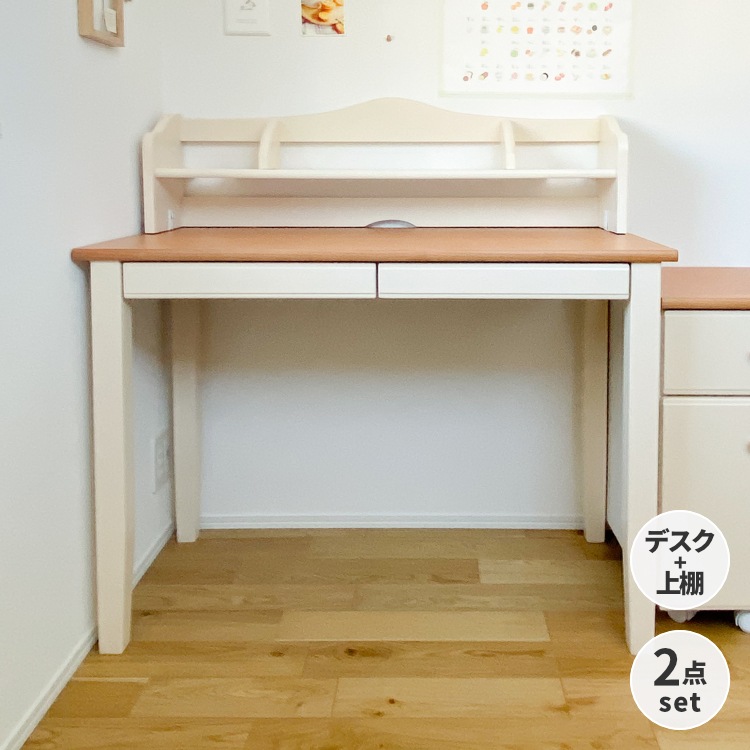 学習デスクセット 2点セット デスク 上棚 学習机 収納 デスク用 机上 卓上 ブックラック ブックスタンド 木製 バーチ材 シンプル ホワイト ブラウン コンパクト 北欧 ナチュラル PCデスク 引き出し 女の子 大人