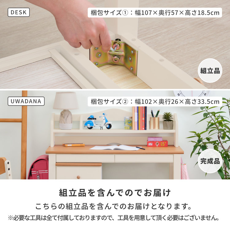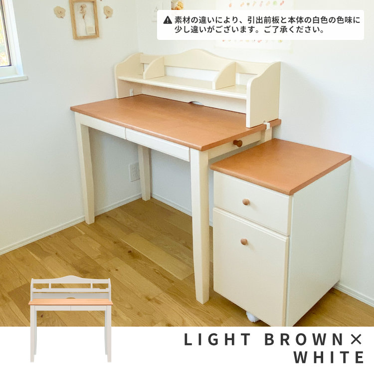 【セット】シャンテ デスク+ウワダナ(ライトブラウン+ホワイト)2点セット