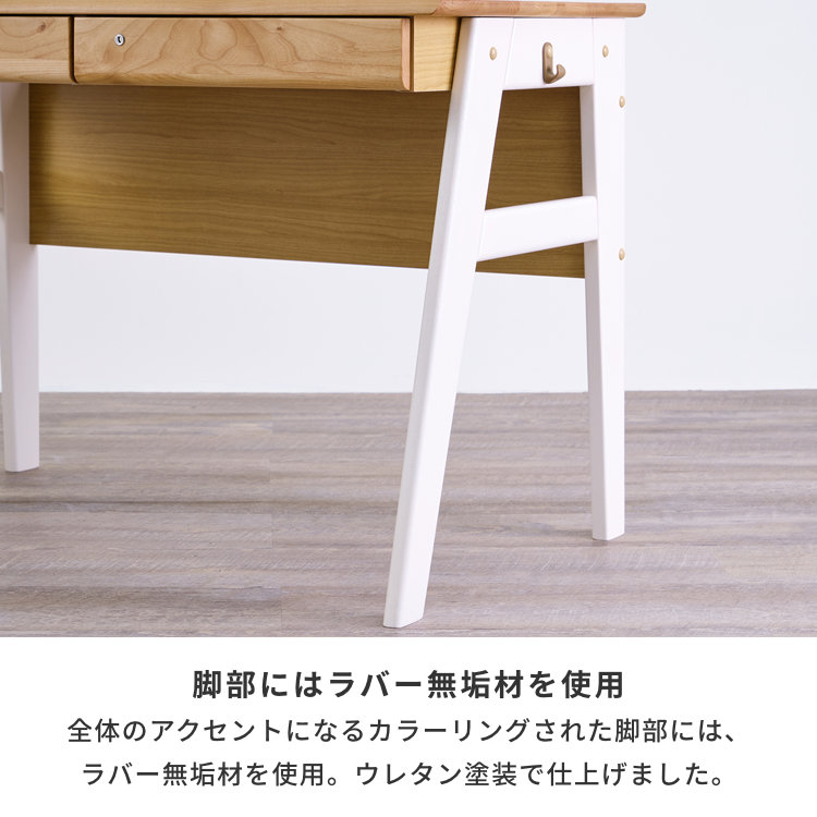 娘が高学年になり自室で勉強をすることになったのでワゴンとセットで購入しました。足が白いデザインがおしゃれだし、部屋も明るく見えます。また娘は机に鍵付きの引き出しがあることが特に気に入ったようです。小学生以降社会人になっても使おうと思っています。