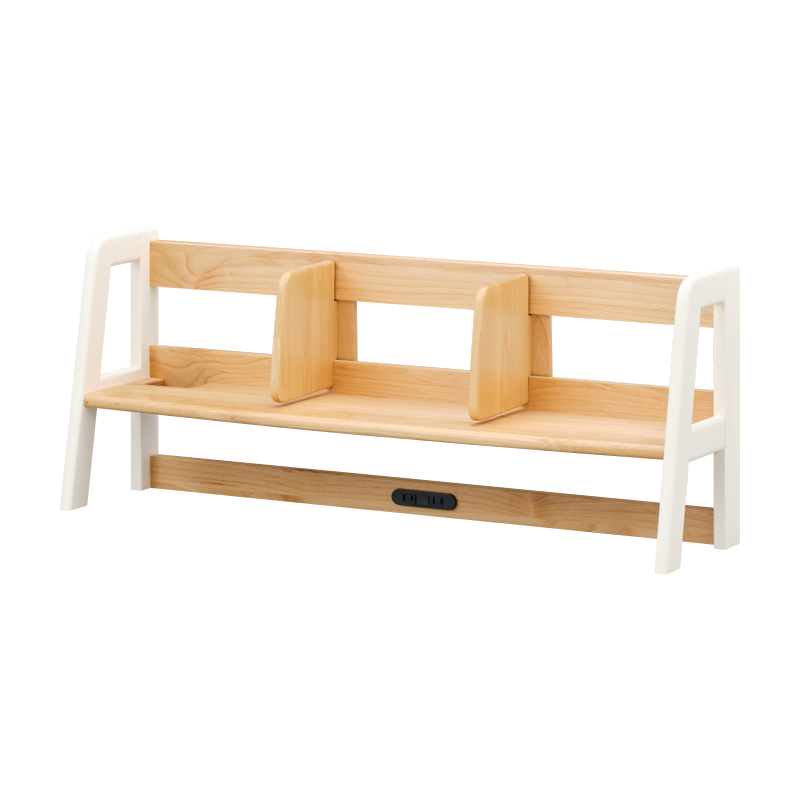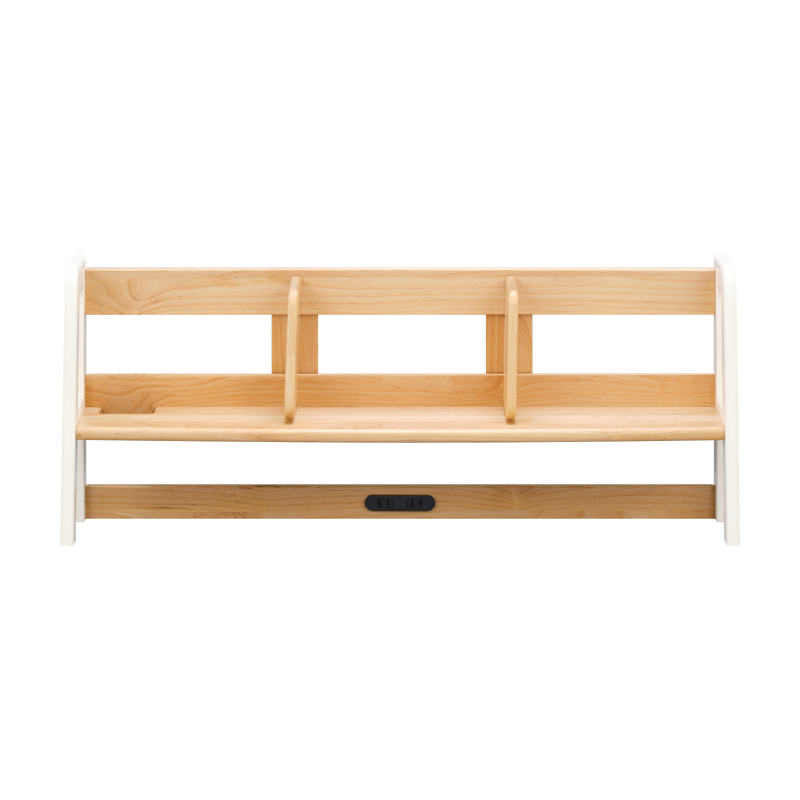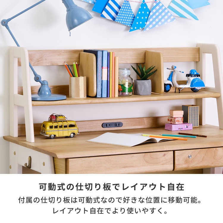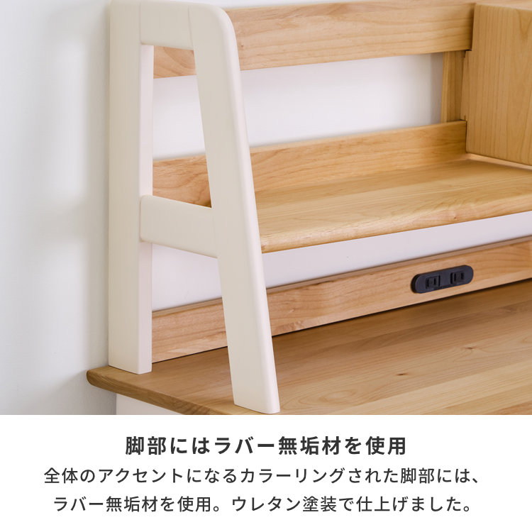 無垢材を贅沢に使用した、エクリュシリーズのデスク専用上棚です。(デスクは別売りとなります。)角は丸く削り、全体が手触りよく仕上がっています。エクリュシリーズの特徴である、ツートーンカラーが個性的な上棚になっております。使いやすい自由に動く仕切り板やスライド式のコンセントも付いております。ワイドなサイズですので、本や書類をたっぷり収納できます。