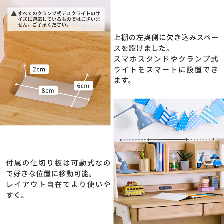 ※上棚の欠き込み加工はすべてのクランプ式ライトが設置できるわけではございません。