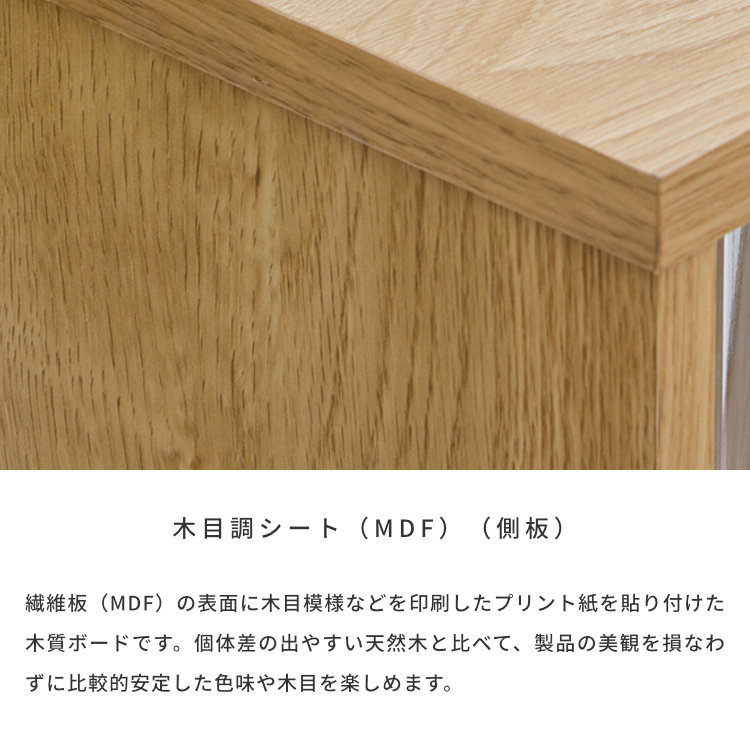- 天板:メラミン樹脂化粧繊維板