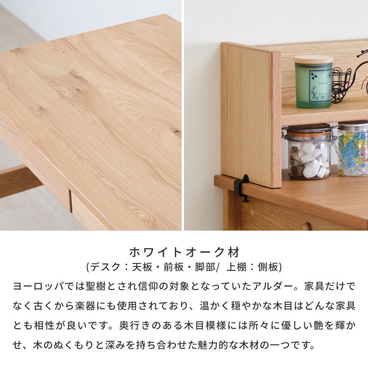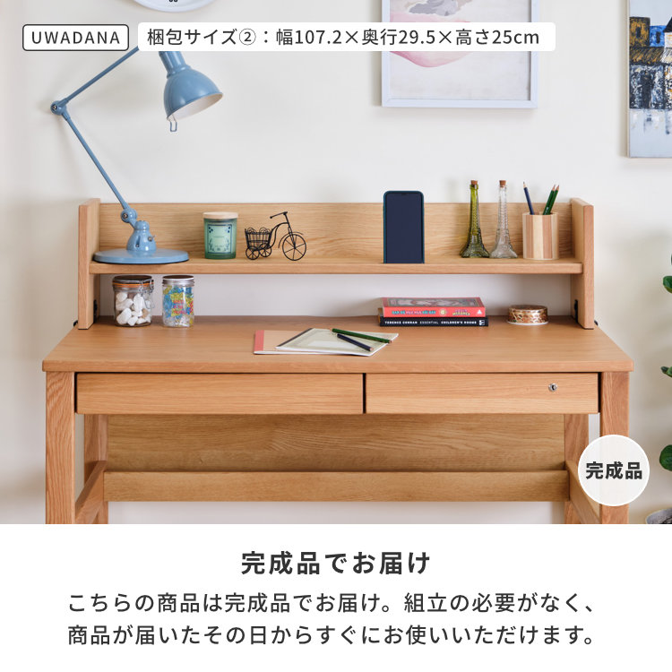 学習机 シンプル 2点セット 幅100 机 上棚 2点 セット 勉強机 学習デスク 中学生 収納 木製 デスク デスクセット リビング学習 無垢 子供 北欧 かわいい おしゃれ 棚 オーク材 ベージュ