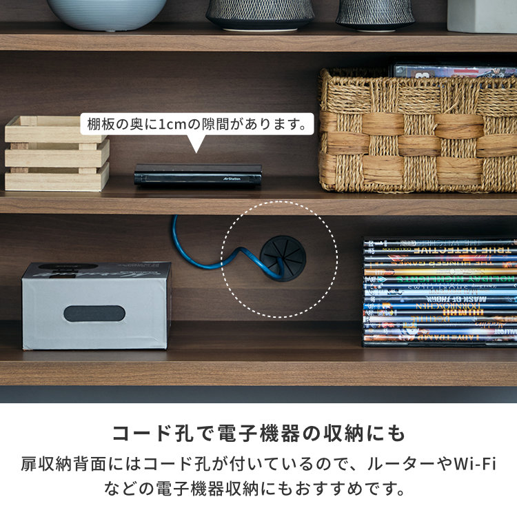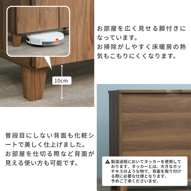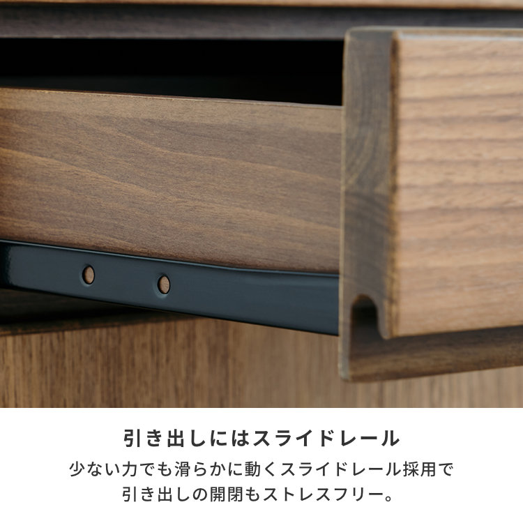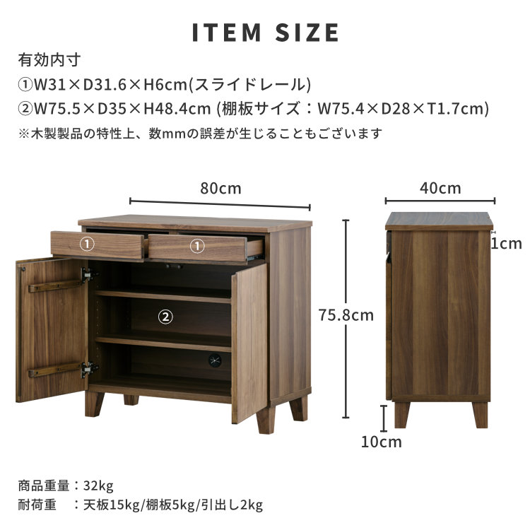 リビング収納 キャビネット サイドボード 壁面収納風 引き出し付き 開き戸 棚板 ウォルナット材 木製 自然派 子供部屋用 ベッドルーム 北欧風 シンプル 脚付き 幅80cm 奥行40cm