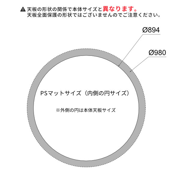 透明度が高く家具本来の見栄えを楽しめます。ベタつきが少ないので食器などのスムーズな移動が可能です。コーティングが施されており、傷つきにくく耐久性に優れています。また、コーティングにより可塑剤が移動しないため、商品天板への影響も心配ありません。化学薬品に対しても強く、綺麗に汚れを落とすことができます。一生紀 ERIS-3 ラウンド座卓 98cm専用にカットした形状となっております。