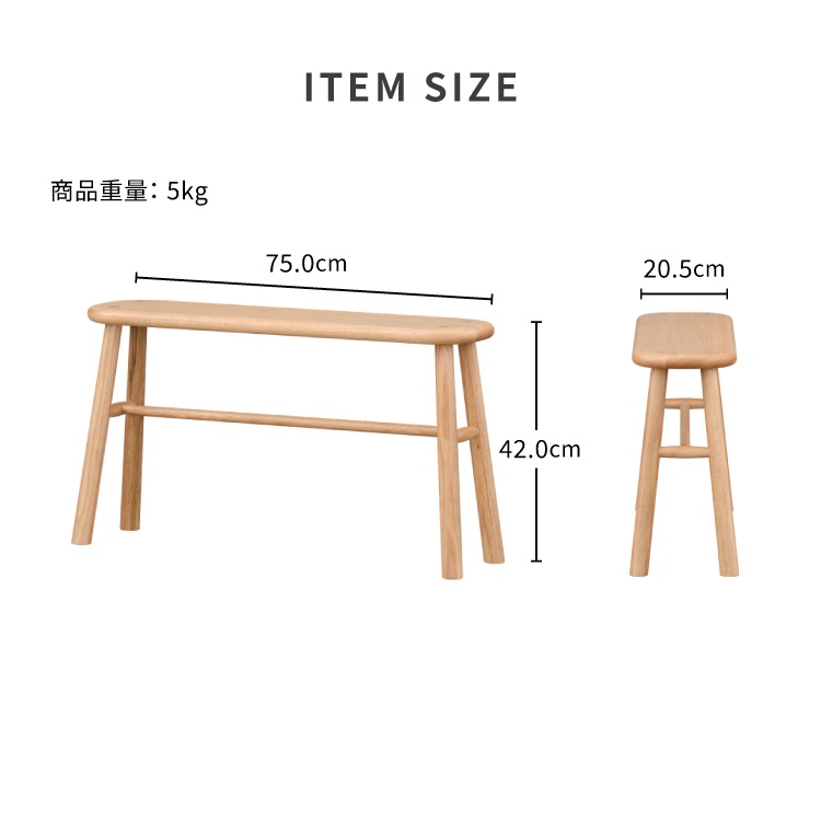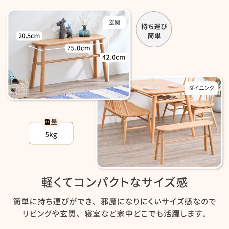 ベンチ 木製 天然木 無垢材 レッドオーク 北欧 シンプル ナチュラル 軽量 リビング 洗面所 玄関 寝室 来客 ディスプレイ 植物スタンド