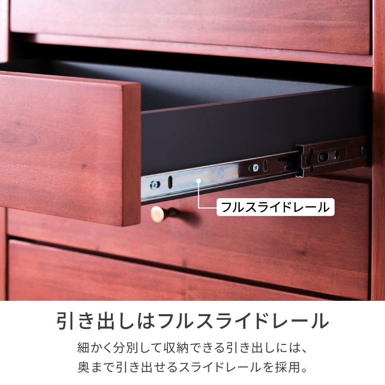 - ※フルスライドレールは勝手に引出しが飛び出てくるのを防ぐため、仕様上最後の数ミリが硬くなっています。そのため、使い始めのうちは開閉が固く感じられたり、締めきるのに力がいることがありますが、使用している間になじんでいき、次第に改善されてまいります。あらかじめご了承ください。