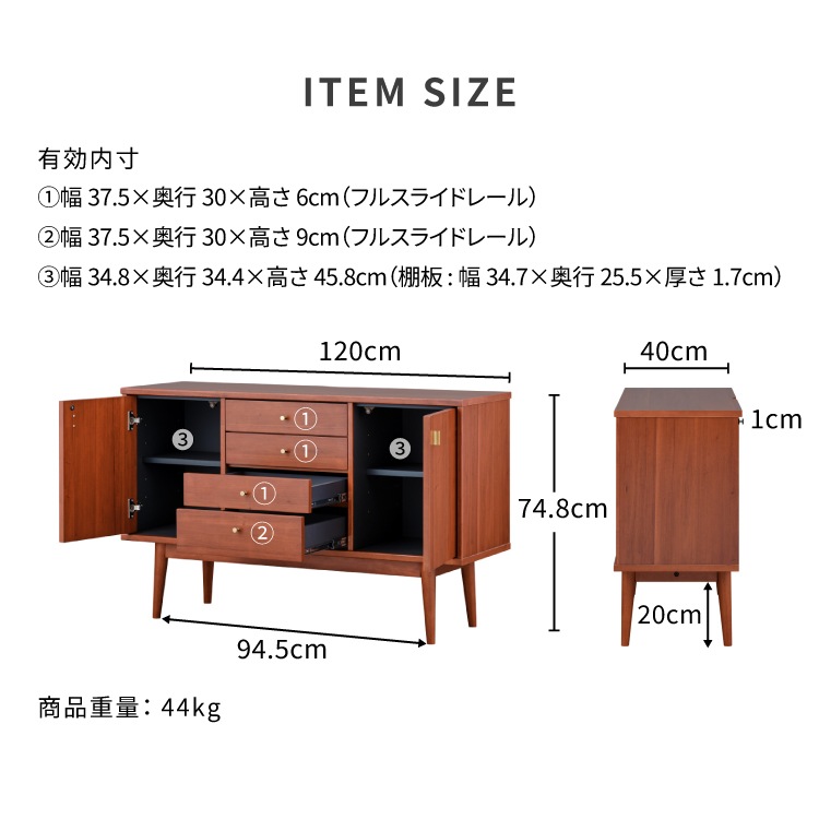 サイドボード 北欧インテリア 北欧風キャビネットリビング収納 リビングボード マホガニー家具 ビンテージデザイン 高脚家具 高品質家具 モダンインテリア 完成品 幅120 高級木製家具