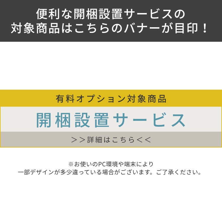 ※開梱設置サービスを購入すると、配送方法が変更となり、商品の出荷からお届けまでに1~2週間いただきます。 ※開梱設置サービスは事前の日時指定ができません。(配送会社様から日程打ち合わせのご連絡がございます) ※日程打ち合わせのご連絡のため、日中連絡が可能なお電話番号の登録をお願い致します。 ※一部地域・離島等で、開梱設置不可能なエリアがございます。(当店からご連絡を致します) |
