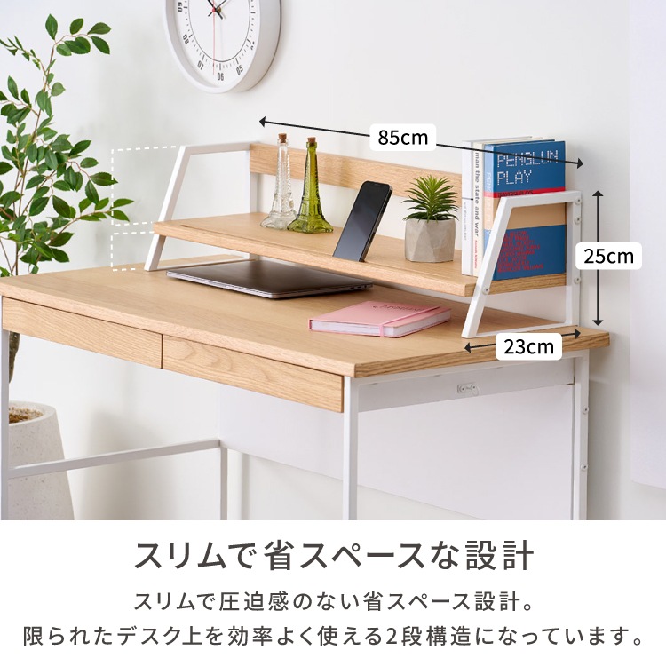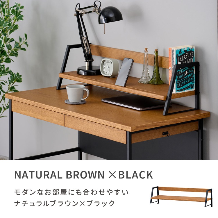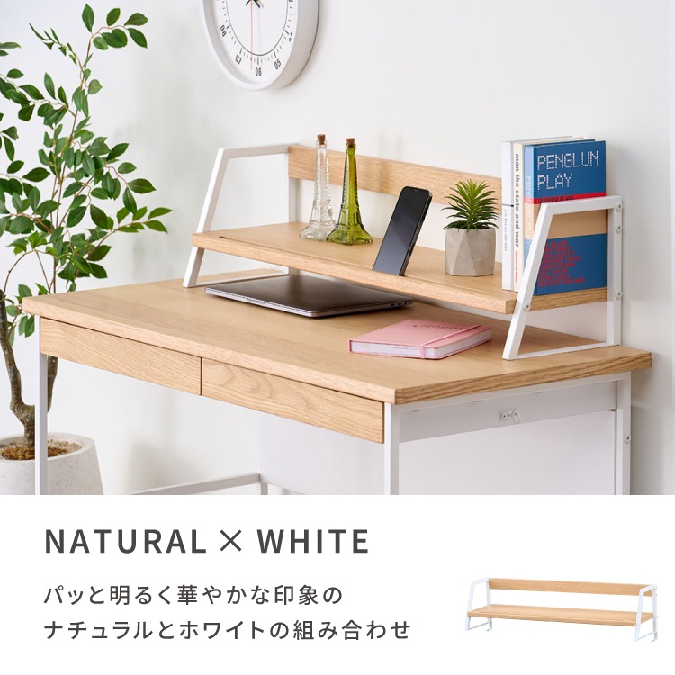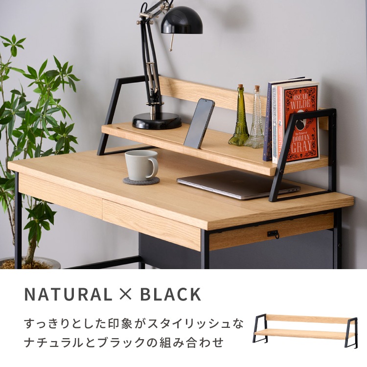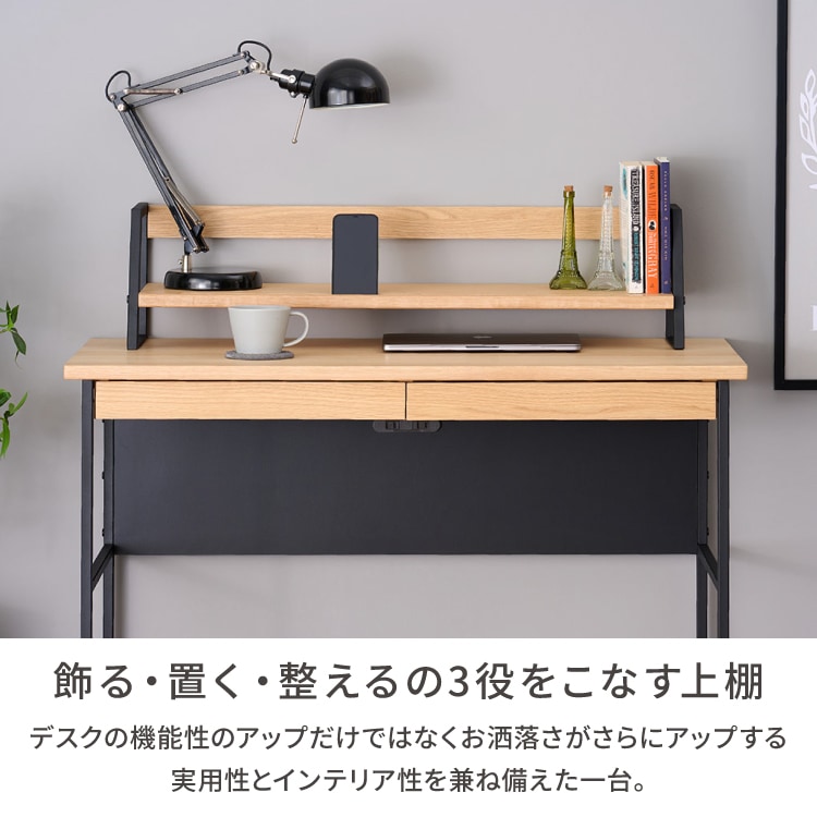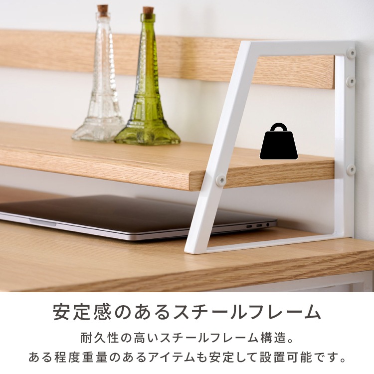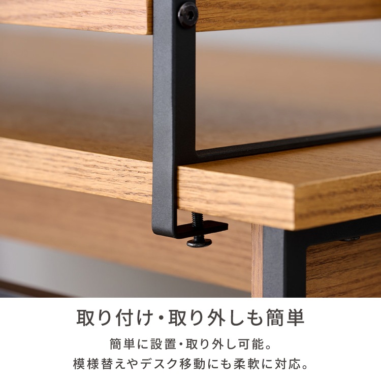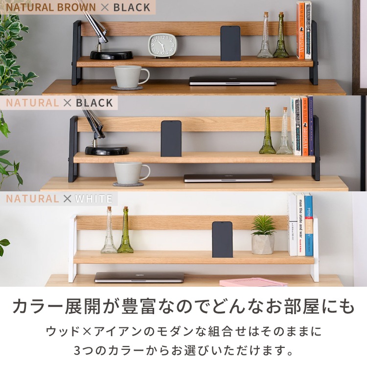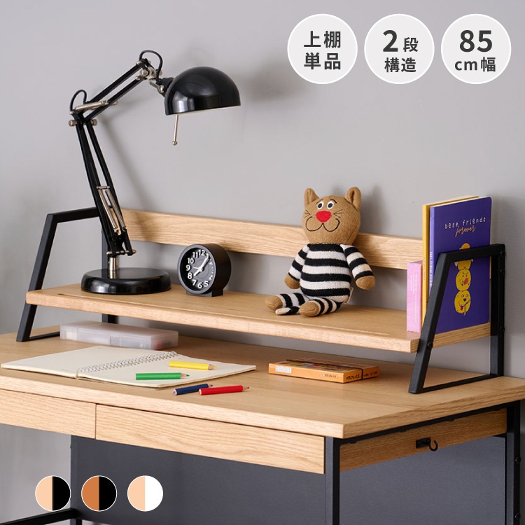 上棚 学習デスク 棚 拡張 本棚 収納 オーク材 インテリア シンプル おしゃれ アイアン 木製 勉強机 大人 PCデスク シェルフ リビング学習