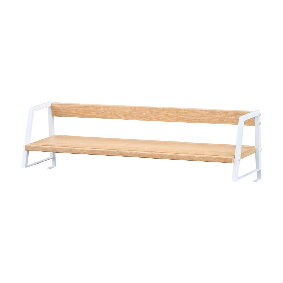 お部屋をすっきり整理できる上棚シェルフです。どんな学習机やワークスペースにも調和し、デスク上を整頓しやすくなります。限られたスペースの有効活用が可能。シンプルなデザインだから長く使えて飽きのこないアイテムです。収納力も十分で、小物や本、文房具などをすっきりまとめて置けます。勉強部屋やリビングにも活躍する便利シェルフ。学習机の上に置けば教科書やノート、リビングなら写真や小物をディスプレイして楽しめます。