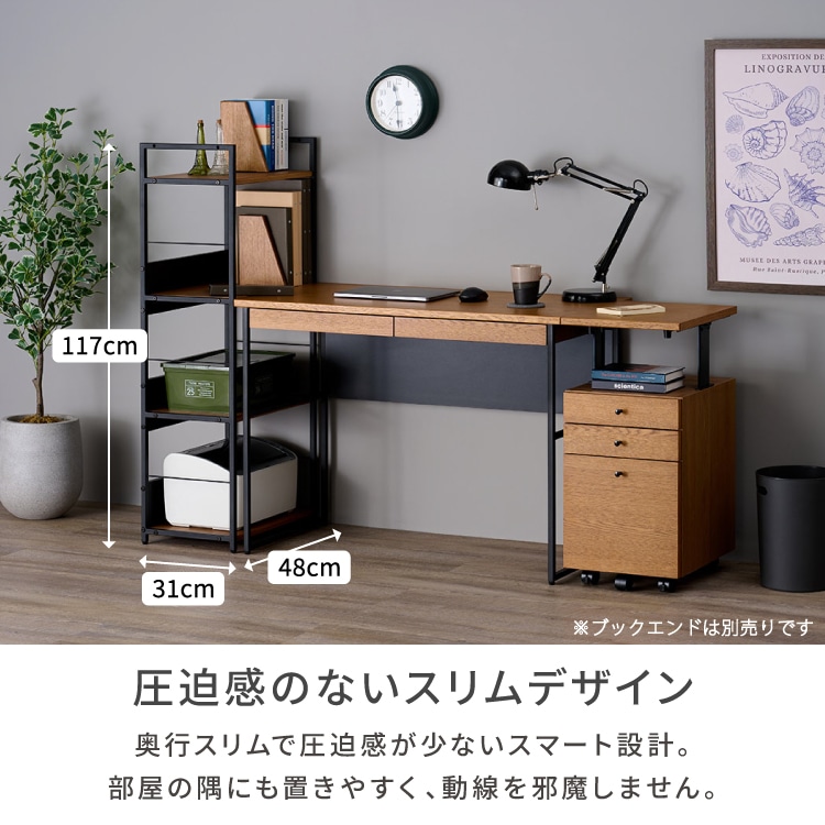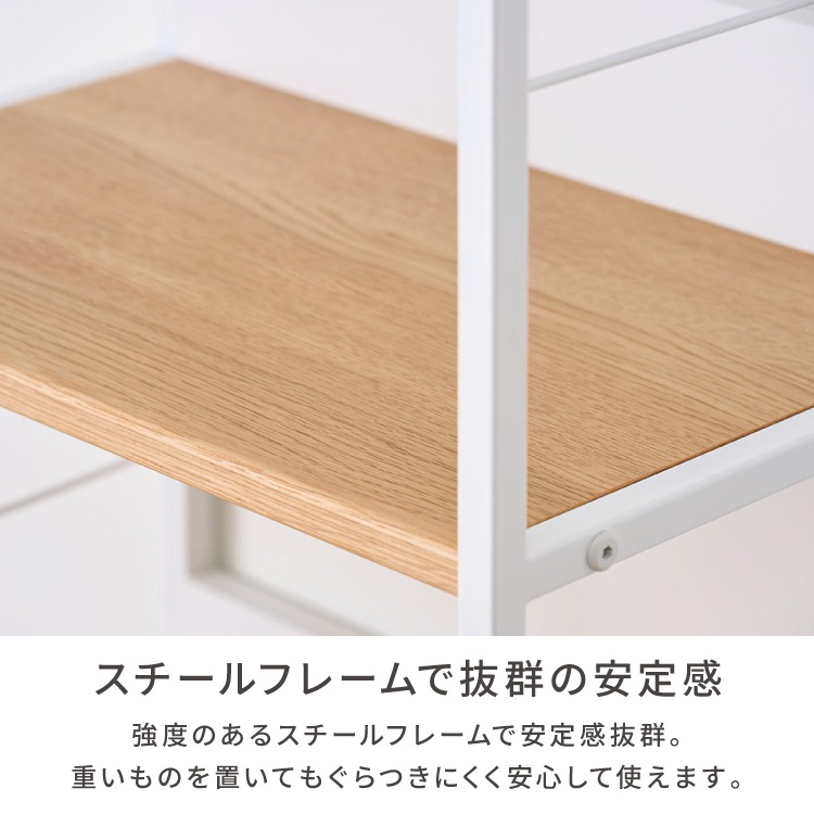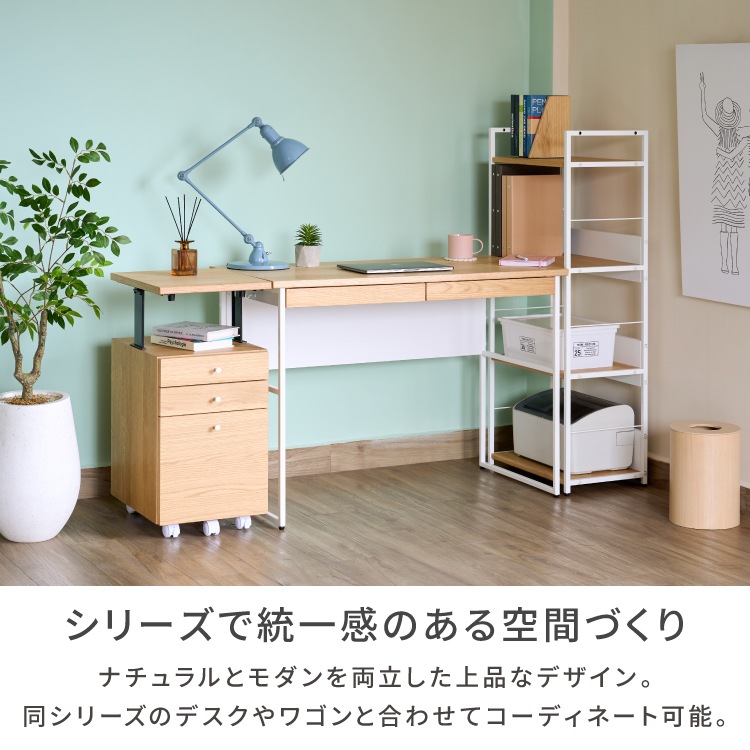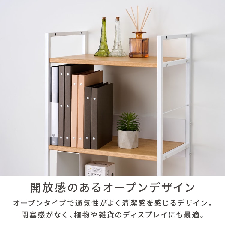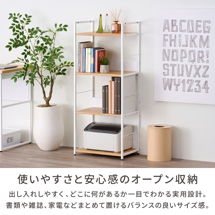 多用途で使いやすいサイドラック。シンプルなデザインでどんなお部屋にもなじみます。ナチュラルな木目が優しい印象を与え、リビングや書斎など様々な空間に調和します。 主張しすぎない落ち着いた色合いは、お部屋の雰囲気を損なうことなく使えるのが魅力です。教科書や書類の整理整頓にも大活躍。学習グッズや生活雑貨の収納にピッタリで、お子さまのお部屋にも最適です。スペースが限られた場所にもすっきり置けて、片付けが自然と習慣になります。