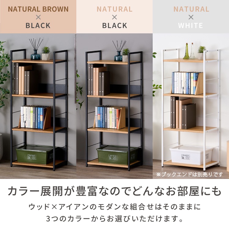 サイドラック 棚 オープンラック 本棚 収納 オーク材 アイアン 棚調整 シンプル 大人 子供 おしゃれ インテリア 学習 書斎収納 木製ラック 主婦向け 省スペース