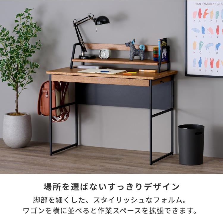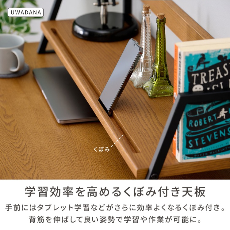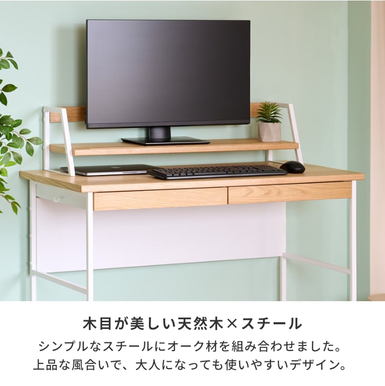2点セットデスク上棚 木製 つくえ 机 本棚 棚 収納 学習机 書斎デスク PCデスク シンプル おしゃれ オーク材 インテリア 勉強机 入学 リビング学習 引き出し