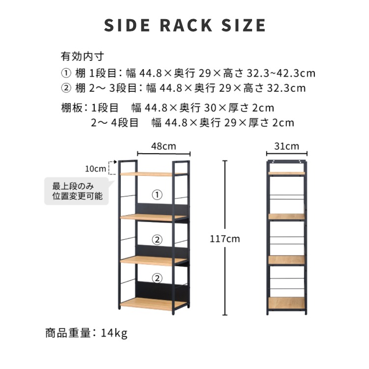 [ワゴンラック]幅80×奥行34×高さ73.2cm - 重量