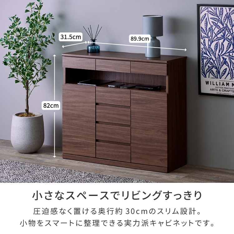 キャビネット サイドボード FAX台収納 充電スポット リビング収納 リビングボード スリムキャビネット 引き出し収納 配線すっきり 多機能ラック 高品質シート 完成品 幅90