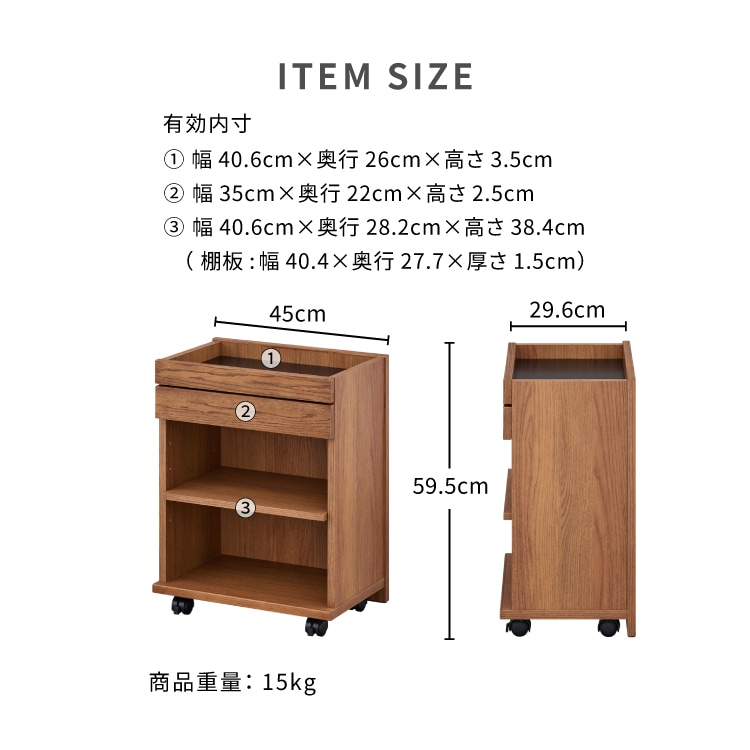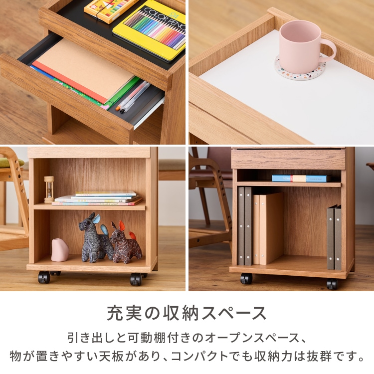 ワゴン ダイニングテーブル 下 スリム キャスター付き リビング学習 リモートワーク ダイニングワゴン デスクワゴン サイドワゴン マルチワゴン サイドテーブル 収納 シンプル おしゃれ コンパクト 木製 オーク材 引き出し 可動棚